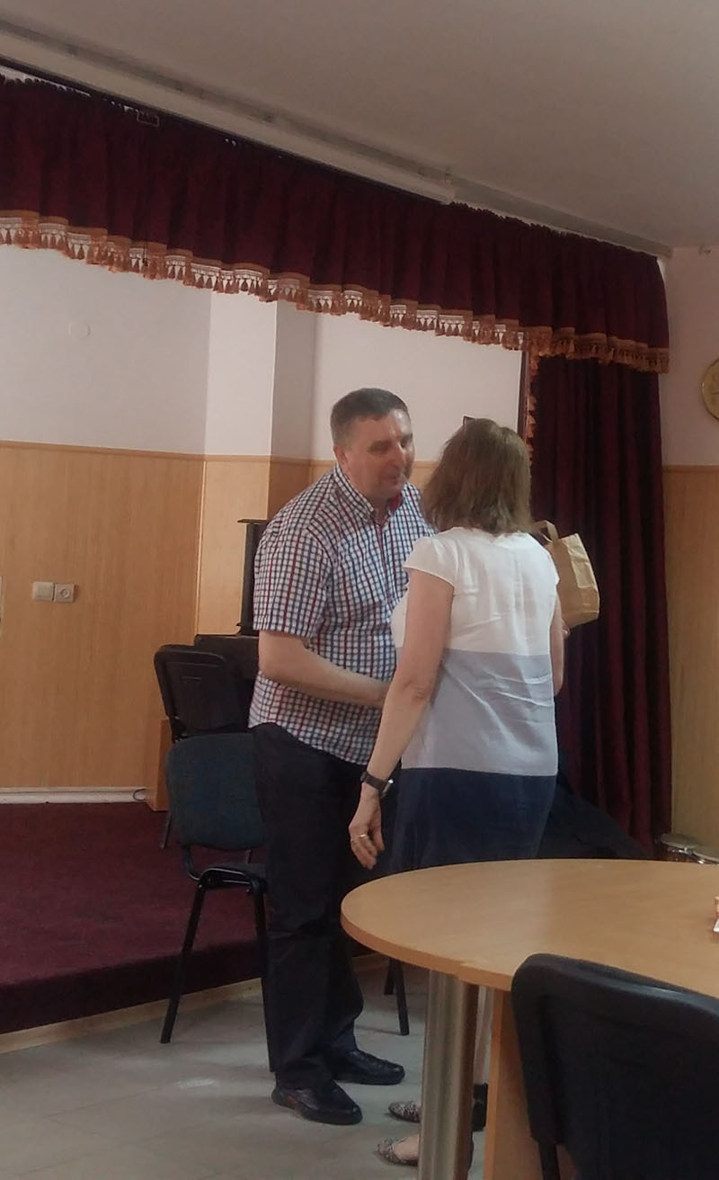 Pożegnalne spotkanie z p. Januszem Jabłońskim, Konsulem Generalnym RP w Charkowie, które odbyło się 24-06-2020 w Sanktuarium Boga Ojca w Zaporożu. Aktywiści ZOSKP na spotkaniu pożegnalnym. Prezes ZOSKP ,dr Olga Pawluk, zegna się z p. Jabłońskim w imieniu ZOS